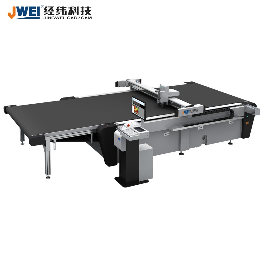 【切割机】资讯 自动送纸系列切割机 自动送纸切割机是经纬公司国内首创系列产品,“技术革命,锲而不舍”是经纬的企业宗旨。经纬自1993年成立以来,追求卓越,不断创新,研发出自动送纸系列切割机,连版切割,实现全自动化操作。此系列切割机广泛应用于服装、制鞋、箱包等行业,可任意连接CAD软件,操作简便。自动送纸切割机节能环保,性能稳定,安全可靠,值得信赖。