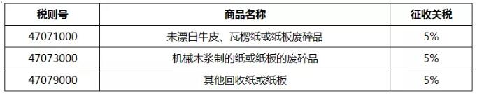 涉及废纸税则号一览表
