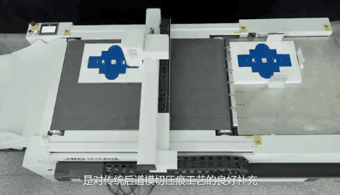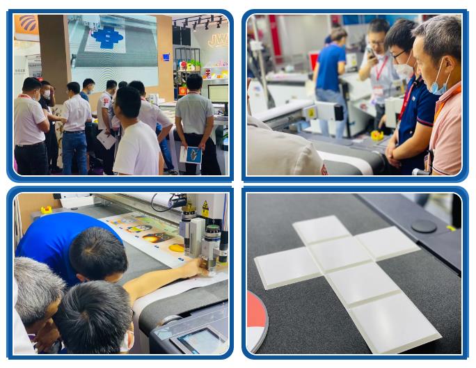 全能型明星产品CB03E小米裁切神机, 现场演示了KT板开槽过程,这一功能完美的替代开槽机,解决了客户无需额外再增加费和节省场地空间。