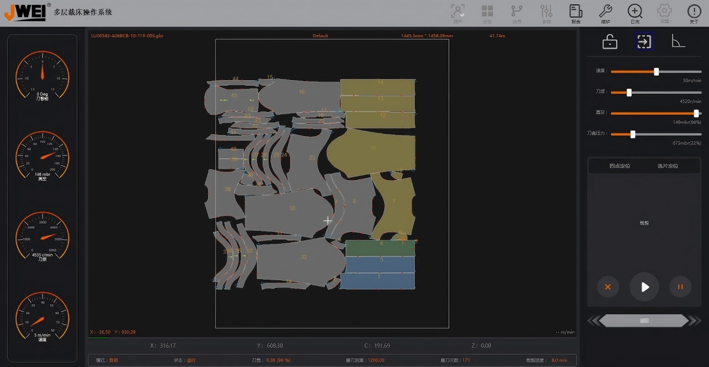 经纬突破性推出MI系列智能多层裁床,搭载“真边走边裁”核心技术,实现高达100米/分钟的高速切割效能,同时通过AI视觉定位与零间距裁剪技术将面料利用率再提升5%。其标配即顶配的全时动态变频真空吸附系统,确保针织至复合PVC等多种柔性材料裁切时层间公差严格控制在±1mm内,配合易览(Easy Viewing)、易设(Easy Setting)等创新性智能???,显著降低操作难度。该系列可广泛应用于服装、汽车内饰、医疗防护材料领域,为高效精密裁切树立新基准。